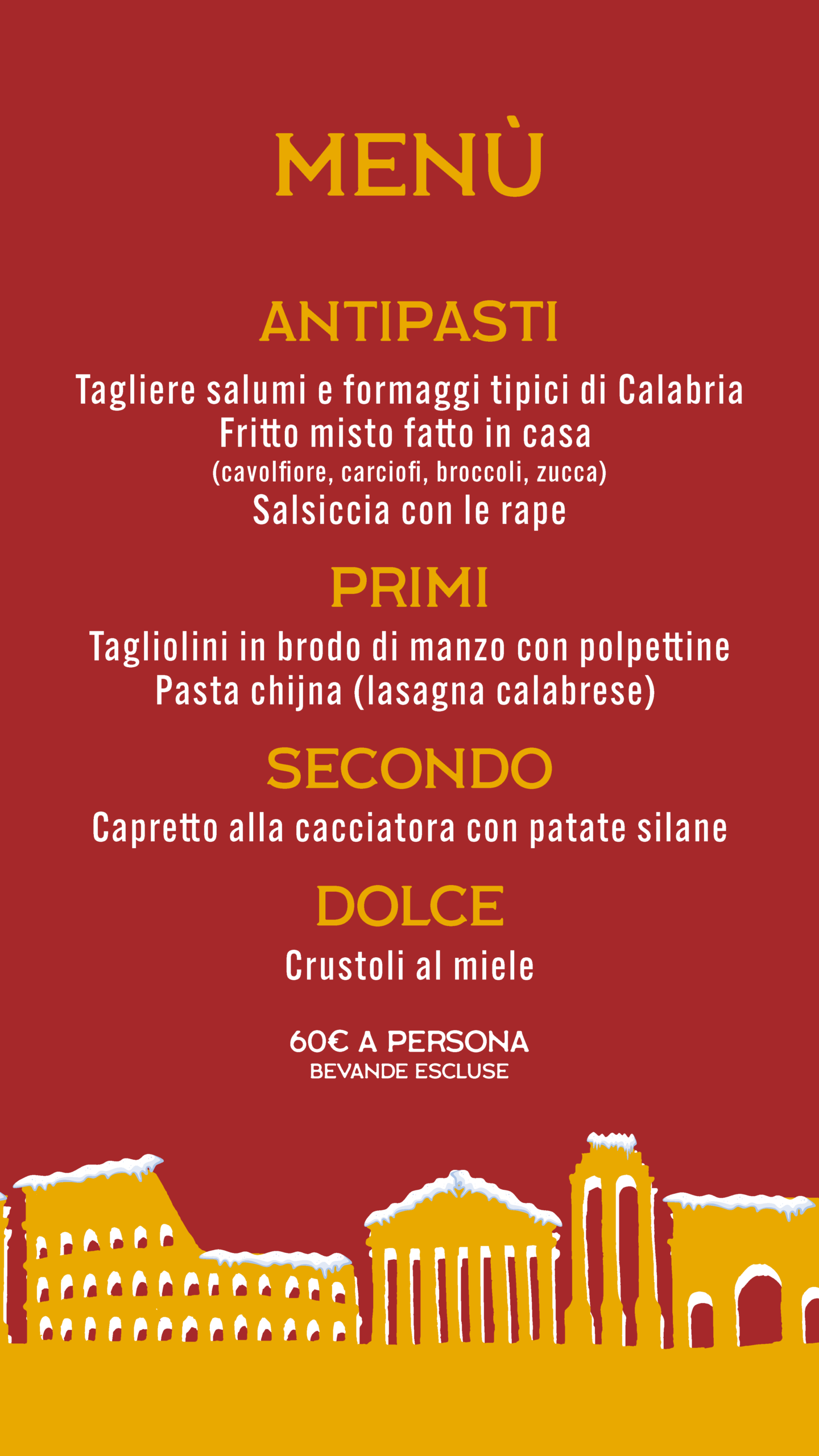Uova, pecorino, guanciale di maiale e pepe nero. Allergeni (1-3-7)